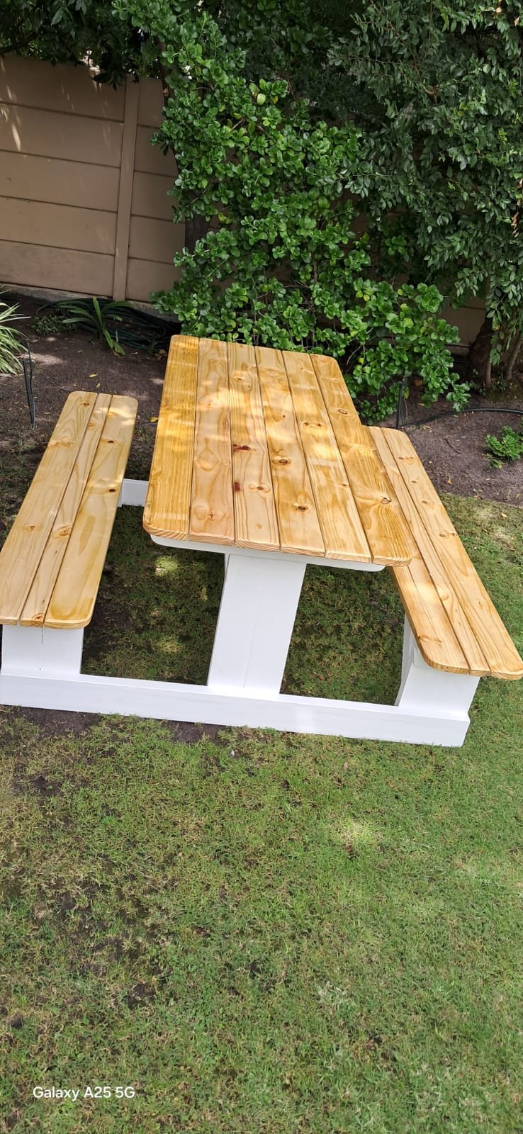 This beautifully crafted outdoor picnic table combines durability, comfort, and modern design. Built from high-quality natural wood and finished with a strong painted base, it is designed to withstand outdoor conditions while maintaining an elegant appearance. The integrated seating makes it a practical space-saving solution for gardens, schools, restaurants, and relaxation areas. With its smooth finish and sturdy construction, this table is perfect for outdoor dining, social gatherings, and everyday use.